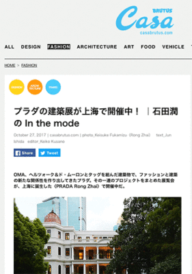 スポンサーリンク プラダの建築展が上海で開催中! |石田潤の In the mode (カーサ ブルータス) まちづくり 2017.11.092025.10.04 プラダの建築展「Prada Rong Zhai」が上海で開催中とのことです。 →『プラダの建築展が上海で開催中! 』 https://casabrutus.com/fashion/58268
