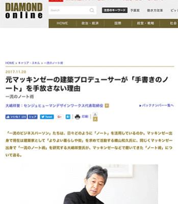アラカルト「元マッキンゼーの建築プロデューサーが「手書きのノート」を手放さない理由」という記事が、ダイヤモンド・オンラインに掲載されています。