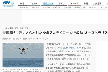 オーストラリア・ニューサウスウェールズ州でドローンによる世界初の水難救助がおこなわれたそうです。