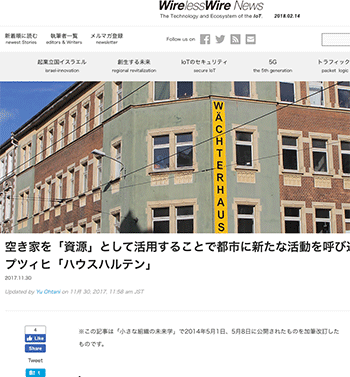 まちづくり「空き家を「資源」として活用することで都市に新たな活動を呼び込む – ライプツィヒ「ハウスハルテン」」というドイツ中部の都市ライプツィヒの事例を紹介している記事が、WirelessWire Newsに掲載されています。