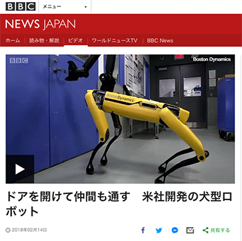 →『ドアを開けて仲間も通す 米社開発の犬型ロボット』