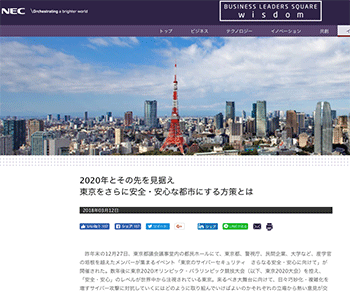 まちづくり「2020年とその先を見据え東京をさらに安全・安心な都市にする方策とは」という「東京のサイバーセキュリティ さらなる安全・安心に向けて」という講演会の模様をまとめている記事が、wisdomに掲載されています。