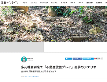 不動産動向「多死社会到来で「不動産放置プレイ」悪夢のシナリオ」という牧野知弘氏による記事が文春オンラインに掲載されています。