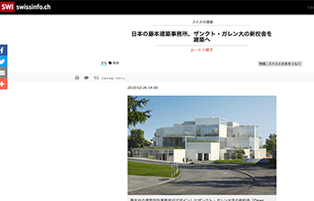 藤本壮介建築設計事務所が手がけることが決まったスイスのザンクト・ガレン大学(HSG)に建築予定の新校舎「Open Grid―Choices of Tomorrow」について取り上げている記事が、SWI swissinfo.chに掲載されています。