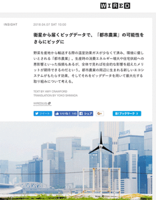 「衛星から届くビッグデータで、「都市農業」の可能性をさらにビッグに」というアメリカでの事例を紹介している記事が、WIRED.jpに掲載されています。