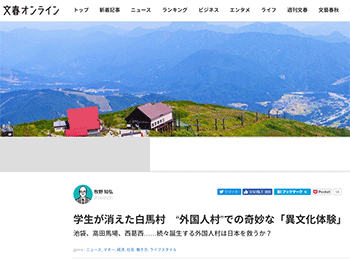 「学生が消えた白馬村 “外国人村”での奇妙な「異文化体験」」という牧野知弘氏による記事が、文春オンラインに掲載されています。