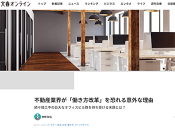 不動産動向「不動産業界が「働き方改革」を恐れる意外な理由」という牧野知弘氏による記事が、文春オンラインに掲載されています。