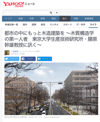 「都市の中にもっと木造建築を ~木質構造学の第一人者 東京大学生産技術研究所・腰原幹雄教授に訊く~」という記事が、Yahoo!ニュースに掲載されています。