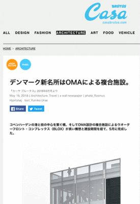 OMA設計による複合施設ウオーターフロント・コンプレックス「BLOX」について取り上げている記事が、Casa BRUTUSに掲載されています。