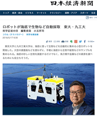 ロボット&ドローン東京大学と九州工業大学が開発した、海底に潜って生物などを自動的に集める小型ロボットについて取り上げている記事が、日本経済新聞に掲載されています。