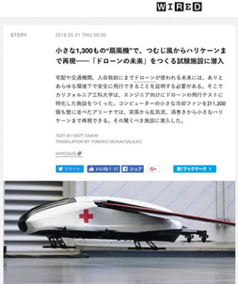 「小さな1,300もの“扇風機”で、つむじ風からハリケーンまで再現──「ドローンの未来」をつくる試験施設に潜入」という記事が、WIRED.jpに掲載されています。