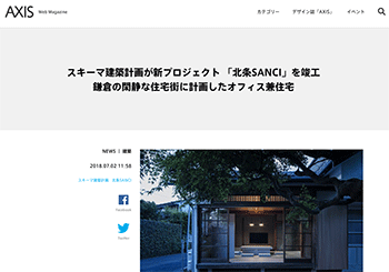スキーマ建築計画の新プロジェクト 「北条SANCI」について取り上げている記事が、Web Magazine AXISに掲載されています。