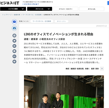 建築家の小堀哲夫氏がLINE本社を訪問し、同社の山根脩平氏に話を聞いている記事が、ビジネス+ITに掲載されています。