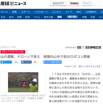 ロボット&ドローン「山の遭難、ドローンで救え 暗闇の山中で初のロボコン開催」という記事が、産経ニュースに掲載されています。