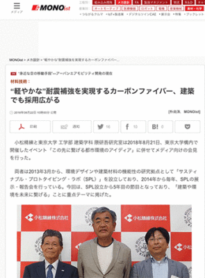 都市防災「“軽やかな”耐震補強を実現するカーボンファイバー、建築でも採用広がる」というイベント「この先に繋げる都市環境のアイディア」でのメディア向けの会見の内容について取り上げている記事が、MONOistに掲載されています。