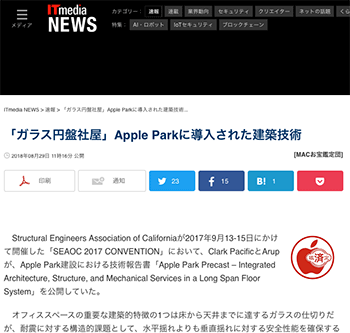 「「ガラス円盤社屋」Apple Parkに導入された建築技術」という記事が、ITmedia NEWSに掲載されています。