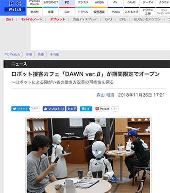 →『ロボット接客カフェ「DAWN ver.β」が期間限定でオープン』