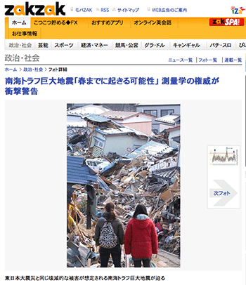 →『南海トラフ巨大地震「春までに起きる可能性」 測量学の権威が衝撃警告』