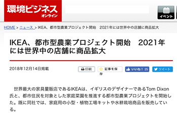 →『IKEA、都市型農業プロジェクト開始 2021年には世界中の店舗に商品拡大』