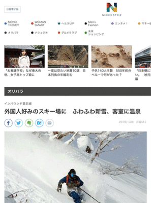 「外国人好みのスキー場に ふわふわ新雪、客室に温泉」というスキーリゾートに関する記事が、NIKKEI STYLEに掲載されています。