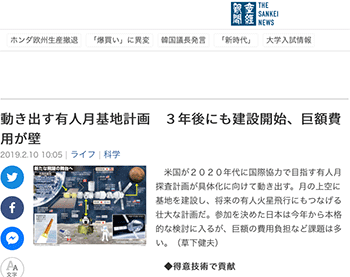 →『動き出す有人月基地計画 3年後にも建設開始、巨額費用が壁 』