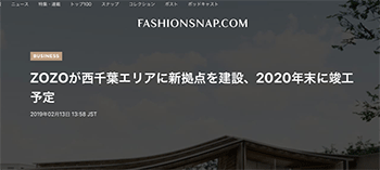 「ZOZOが西千葉エリアに新拠点を建設、2020年末に竣工予定」という記事が、fashionsnap.comに掲載されています。