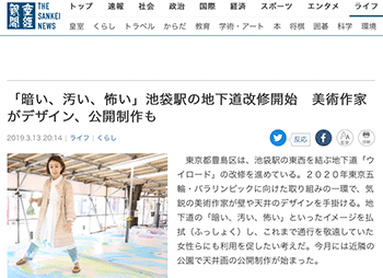 →『「暗い、汚い、怖い」池袋駅の地下道改修開始 美術作家がデザイン、公開制作も 』