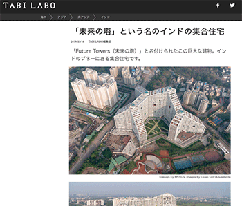 スポンサーリンク 「未来の塔」という名のインドの集合住宅 (TABI LABO) 住宅 2019.04.122025.10.08 「「未来の塔」という名のインドの集合住宅」という記事が、TABI LABOに掲載されています。 →『「未来の塔」という名のインドの集合住宅』 https://tabi-labo.com/290875/wt-futuretowers