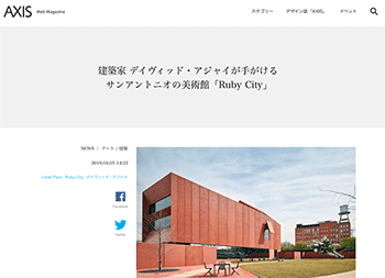 アメリカ、サンアントニオのデイヴィッド・アジャイ(David Adjaye)が設計をてがけた「Ruby City」について取り上げている記事が、Web Magazine AXISに掲載されています。