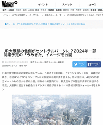 JR大阪駅の北側の旧梅田貨物駅跡地の開発内容について取り上げている記事が、ウォーカープラスに掲載されています。