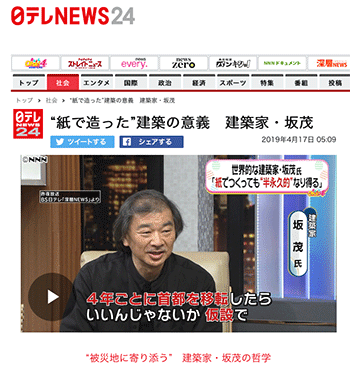建築建築家の坂茂氏に話を聞いているテレビ番組のまとめ記事が、日テレNEWS24に掲載されています。