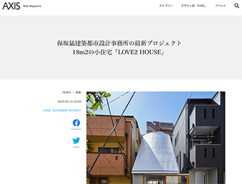 保坂猛建築都市設計事務所による住宅「LOVE2 HOUSE」について取り上げている記事が、AXISに掲載されています。