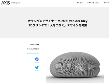→『オランダのデザイナー Michiel van der Kley 3Dプリンタで「人をつなぐ」デザインを考案』