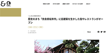 建築「歴史のまち「奈良県桜井市」に旧建築を生かした宿やレストランがオープン」という記事が、&TRAVELに掲載されています。