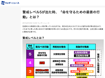 都市防災「警戒レベル5が出た時、「命を守るための最善の行動」とは?」という記事が、ウェザーニュースに掲載されています。
