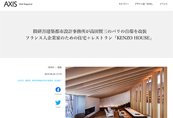 隈研吾建築都市設計事務所が改装したという「KENZO HOUSE」について取り上げている記事が、AXISに掲載されています。