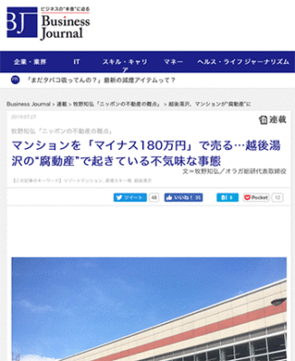 都市とメディア「マンションを「マイナス180万円」で売る…越後湯沢の“腐動産”で起きている不気味な事態」という牧野知弘氏による記事が、ビジネスジャーナルに掲載されています。
