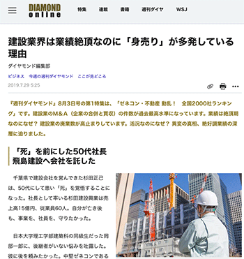 アラカルト「建設業界は業績絶頂なのに「身売り」が多発している理由」という記事が、ダイヤモンド・オンラインに掲載されています。