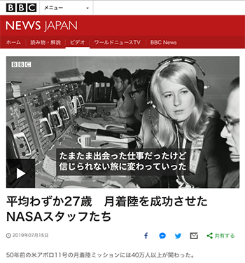 「平均わずか27歳 月着陸を成功させたNASAスタッフたち」という動画ニュースが、BBCニュースに掲載されています。