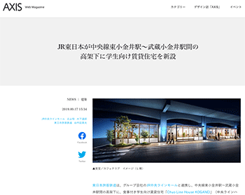 中央線東小金井駅~武蔵小金井駅間の高架下に、2020年春に開業する食事付き学生向け賃貸住宅「Chuo Line House KOGANEI」について取り上げている記事が、AXISに掲載されています。