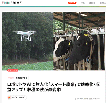 ロボット&ドローン「ロボットやAIで無人化「スマート農業」で効率化・収益アップ! 収穫の秋が激変中」という記事が、FNN.jpプライムオンラインに掲載されています。