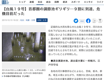 都市防災「【台風19号】首都圏の調節池ギリギリ…9割に到達、危機目前だった」という台風19号関連のニュースを取り上げている記事が、産経ニュースに掲載されています。