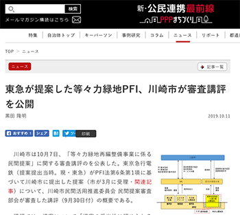 まちづくり「東急が提案した等々力緑地PFI、川崎市が審査講評を公開」という川崎市の取り組みについて取り上げている記事が、新・公民連携最前線|PPPまちづくりに掲載されています。