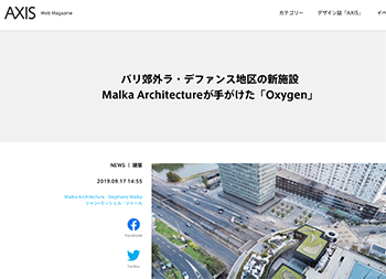 パリ郊外ラ・デファンス地区のMalka Architectureが手がけた「Oxygen」について取り上げている記事が、AXISに掲載されています。