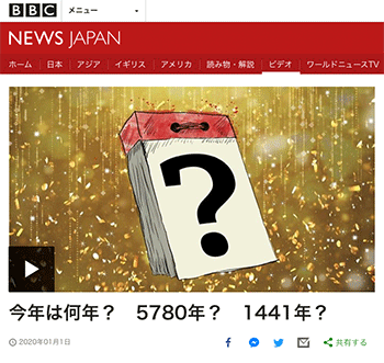 スポンサーリンク 今年は何年? 5780年? 1441年? /動画 (BBCニュース) アラカルト 2020.01.032025.10.04 「今年は何年? 5780年? 1441年?」という動画が、BBCニュースに掲載されています。 →『今年は何年? 5780年? 1441年?』 https://www.bbc.com/japanese/video-50963543