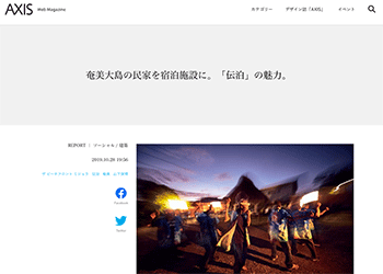 日本旅館・古民家再生「奄美大島の民家を宿泊施設に。「伝泊」の魅力。」という山下保博氏の活動などについて話をきいている記事が、AXISに掲載されています。