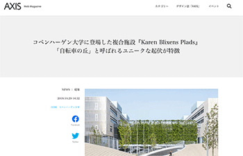 デンマーク・コペンハーゲンの複合施設「Karen Blixens Plads」内にある建築設計事務所 COBEがデザインした「自転車の丘」について取り上げている記事が、AXISに掲載されています。