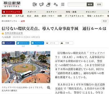 「信号ない環状交差点、導入で人身事故半減 通行ルールは」という信号機のない環状交差点「ラウンドアバウト」に関するニュースを取り上げている記事が、朝日新聞デジタルに掲載されています。