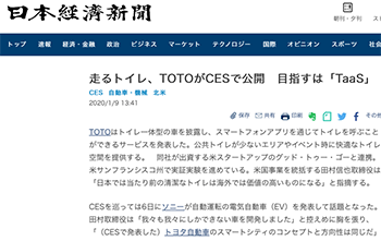「走るトイレ、TOTOがCESで公開 目指すは「TaaS」」というTOTOによる取り組みについて取り上げている記事が、日本経済新聞に掲載されています。