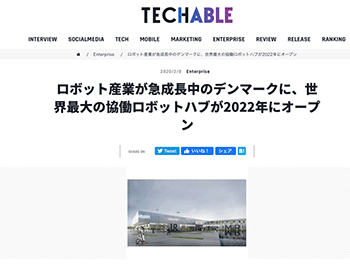 ロボット&ドローン「ロボット産業が急成長中のデンマークに、世界最大の協働ロボットハブが2022年にオープン」というデンマークでの取り組みについて取り上げている記事が、Techableに掲載されています。